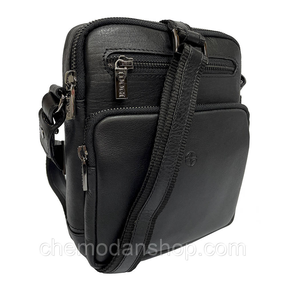 Чорна шкіряна сумочка через плече на 2 відділення.